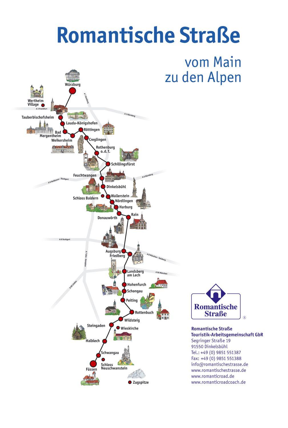 ロマンティック道路のドイツの地図